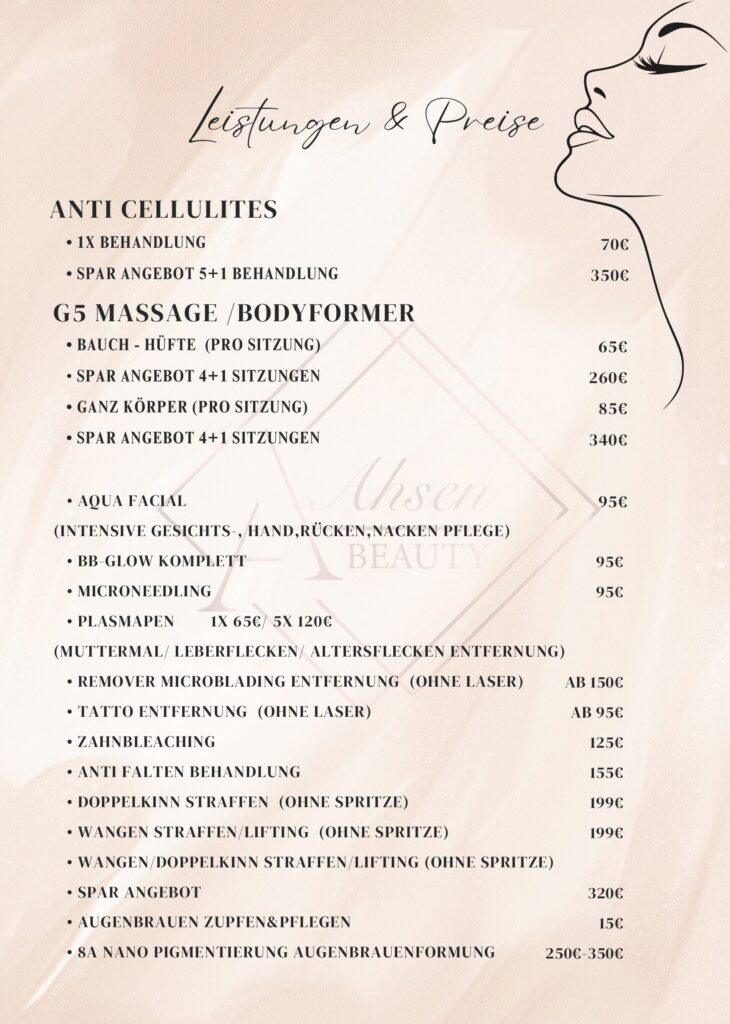 Ahsen ist spezialisiert auf apparative Kosmetik, Laserbehandlungen und moderne Beauty-Treatments. Mit fundierter Fachkunde, einem hohen Qualitätsanspruch und viel Erfahrung sorgt sie für sichtbare Ergebnisse und ein rundum sicheres Behandlungserlebnis.